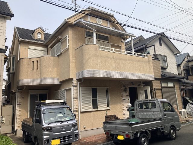 昨年末に交野のほうで住宅の外壁塗替え工事を致しました。壁の黒ずみが、施工前と施工後では全然違って、ピカピカきれいになってますね✨!